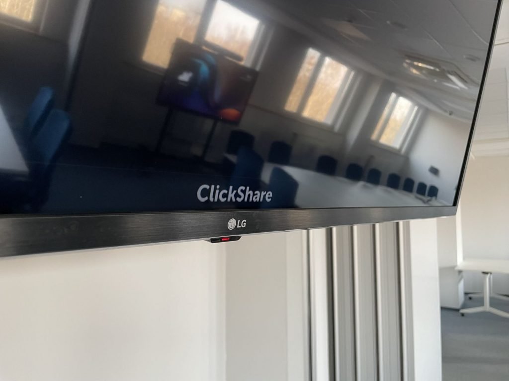 Drugim znanym już elementem były systemy bezprzewodowego przesyłania treści Barco ClickShare. Do tej pory z powodzeniem stosowaliśmy zestawy CSE-200, natomiast idąc kluczem rozwiązań nowoczesnych oraz świeżych technologicznie, przeskoczyliśmy na najnowszą linię urządzeń Barco ClickShare C-10. Nowe zestawy cechują się taką samą niezawodnością i pewnością działania jak poprzednie, lecz oferują wygodny standard USB typu C.