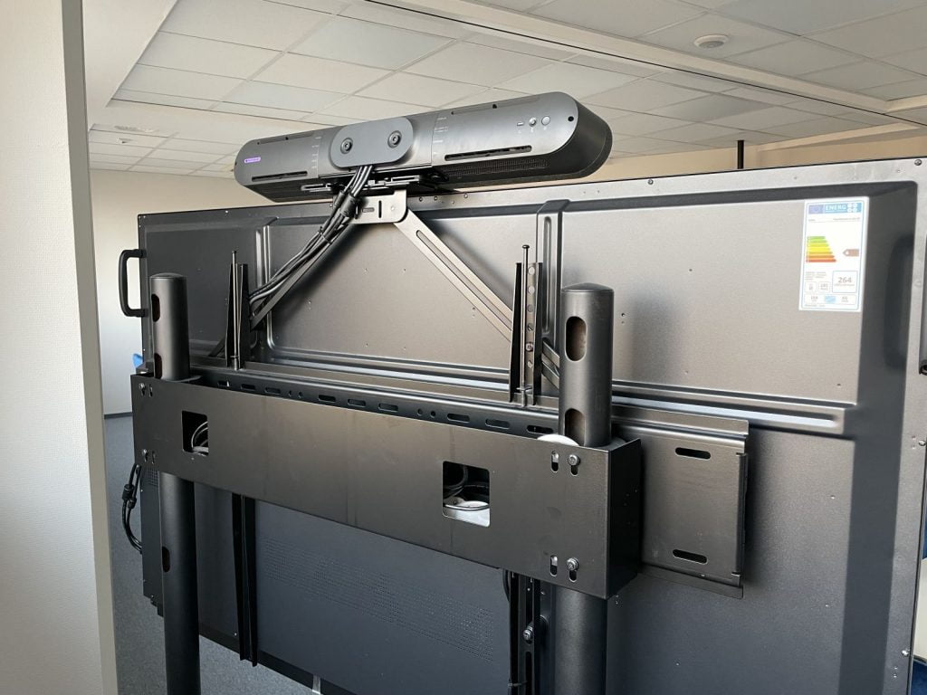 Wybór padł na Rally Bar rozszerzony o trzy dodatkowe mikrofony oraz ekran Logitech Tap. W zestawie mobilnym do wideokonferencji zastosowaliśmy urządzenie Logitech Rally Bar mini. Cechuje je identyczna funkcjonalność jak większego brata, lecz całość jest przystosowana dla mniejszych przestrzeni.