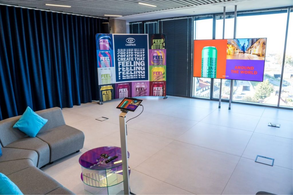 Przedsiębiorstwo CANPACK jest czołowym producentem opakowań dla przemysłu żywnościowego i chemicznego, takich jak aluminiowe opakowania na napoje, puszki, zamknięcia do butelek oraz opakowania szklane. W nowo wzniesionym budynku M29 w okolicy Centrum Kongresowego ICE Kraków powstało nowoczesne biuro, w którym wykorzystaliśmy rozwiązania digital signage oparte o marki Biamp, Samsung, ONELAN oraz Crestron.