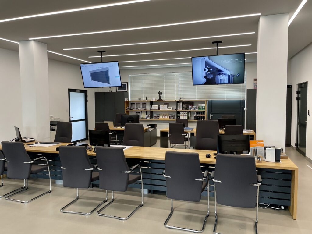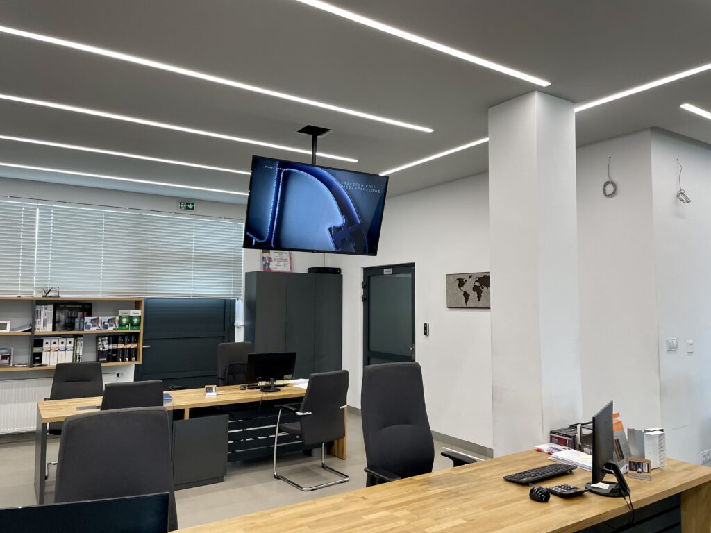 Firma BGM jest sprzedawcą bram, drzwi, ogrodzeń, stolarki oraz automatyki do bram i szlabanów. Posiadają swój salon sprzedaży w Nowym Sączu. Jest to miejsce, w którym Klienci mogą zobaczyć na żywo oferowane przez BGM produkty. Inwestor zgłosił się do nas z prośbą o rozbudowanie salonu o monitory Digital Signage oraz nagłośnienie.
